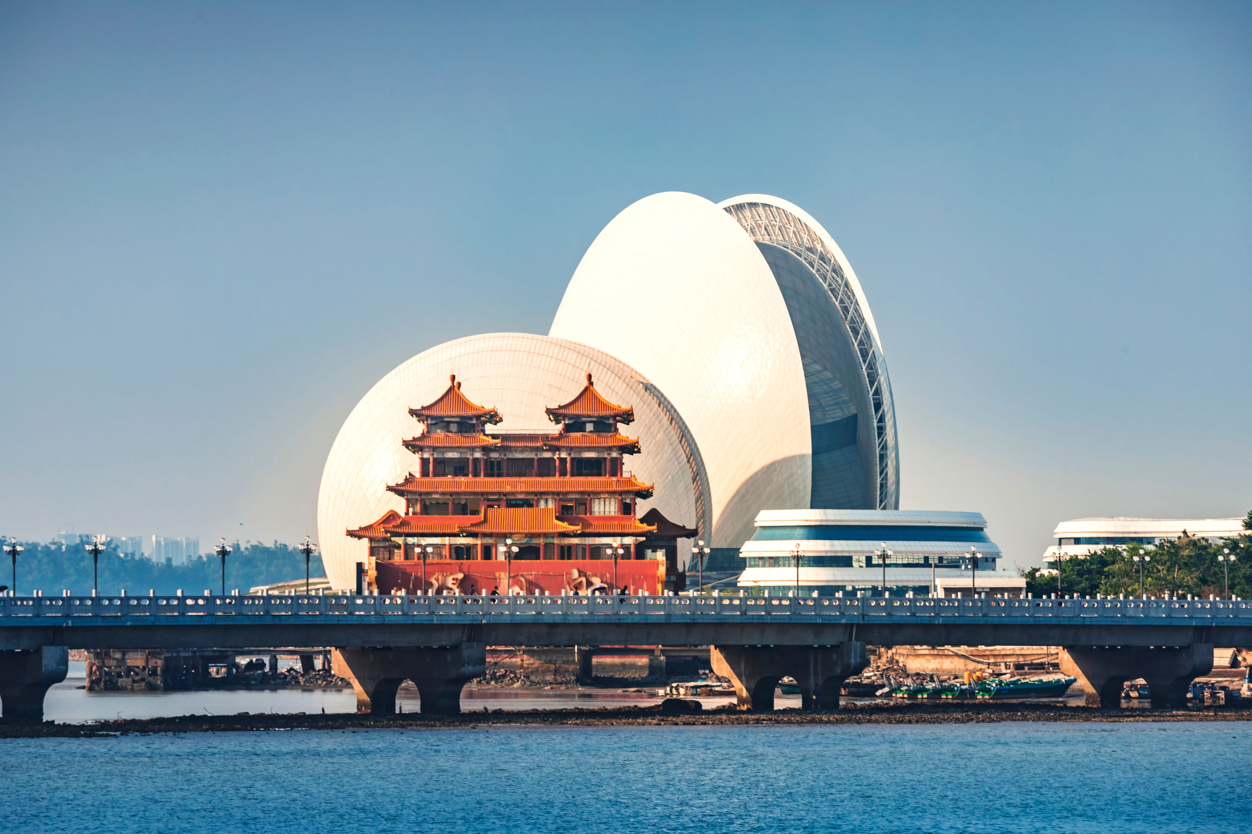 中国唯一建在海岛上的歌剧院,由一大一小两颗“贝壳”组成,造型宛如伶仃洋上的珍珠。不必进入内部看演出,仅外观就足够惊艳:清晨,贝壳在朝霞中泛着淡粉;傍晚,晚霞染红海面,贝壳与天空融为一体;夜晚,灯光璀璨如星河。免费参观外观,随手一拍都是大片。沿着情侣路漫步,在正方喜士多店附近可以拍到日月贝和名亭楼重叠的画面V交易网,古今同框也太出片了!