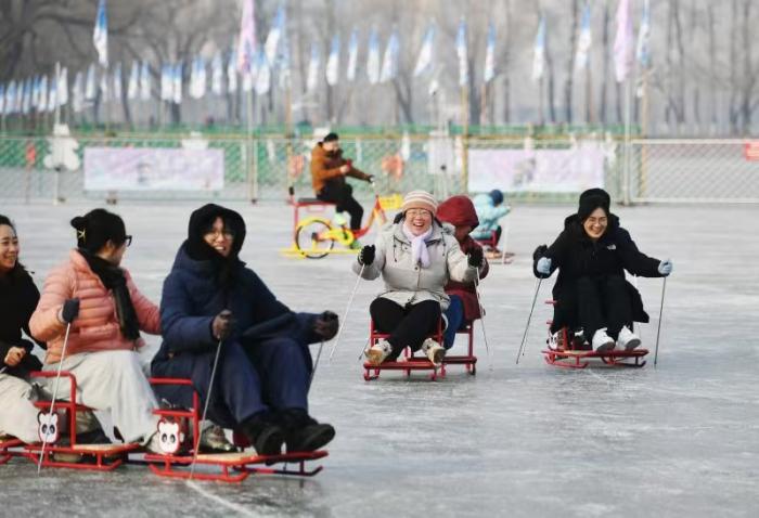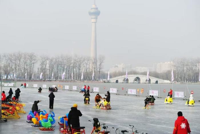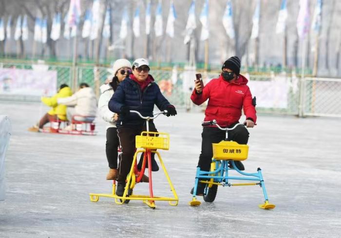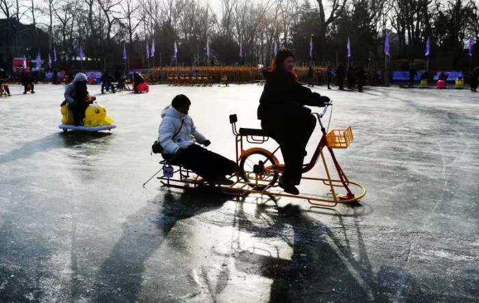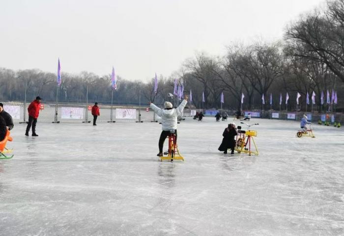 1 月 15 日,北京青年报记者从玉渊潭公园获悉,今年公园打造近 2 万平方米的冰上乐园,融合冰车、冰上自行车、电动冰车、仿真狗拉雪橇、雷霆战车等多种冰上趣味项目,为市民游客呈现一场规模更大、玩法更多、体验更好的冰上嘉年华。
