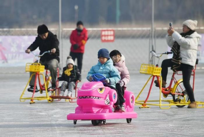 这里既有经典的冰车、冰上自行车,也有让孩子们尖叫连连的‘雷霆战车。